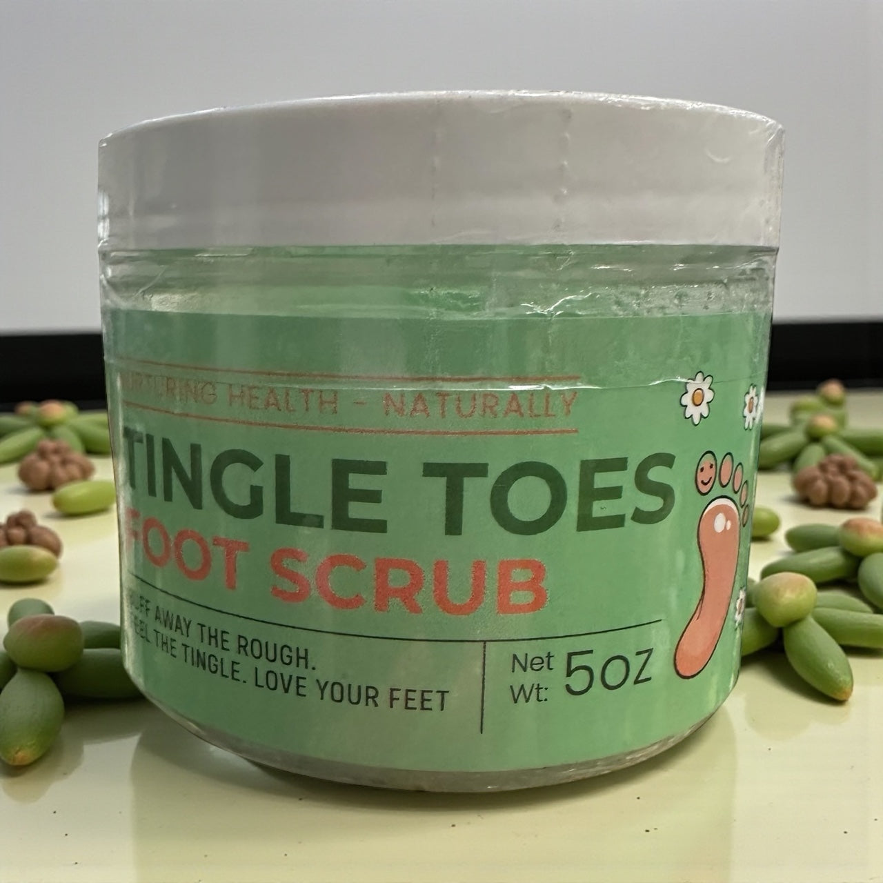 Buff away dry, rough skin with our Tingle Toes Sugar Scrub. This invigorating exfoliant blends natural sugar crystals with hydrating oils and cooling peppermint to polish your feet to perfection. Feel the refreshing tingle as it smooths and softens even the driest heels.